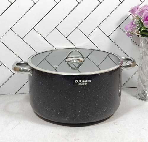 قابلمه گرانیتی مشکی سایز 28 زومبا درب پیرکس