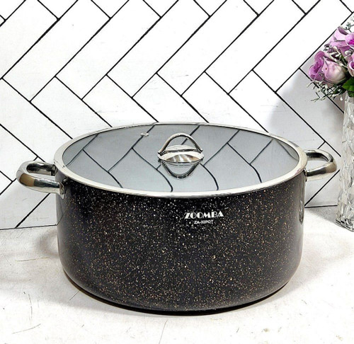 قابلمه گرانیتی مشکی سایز 34 زومبا درب پیرکس
