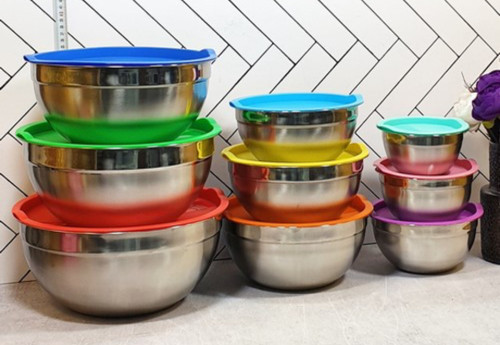 سرویس کاسه ۹ پارچه درب رنگی استیل نگیر زومبا m2921