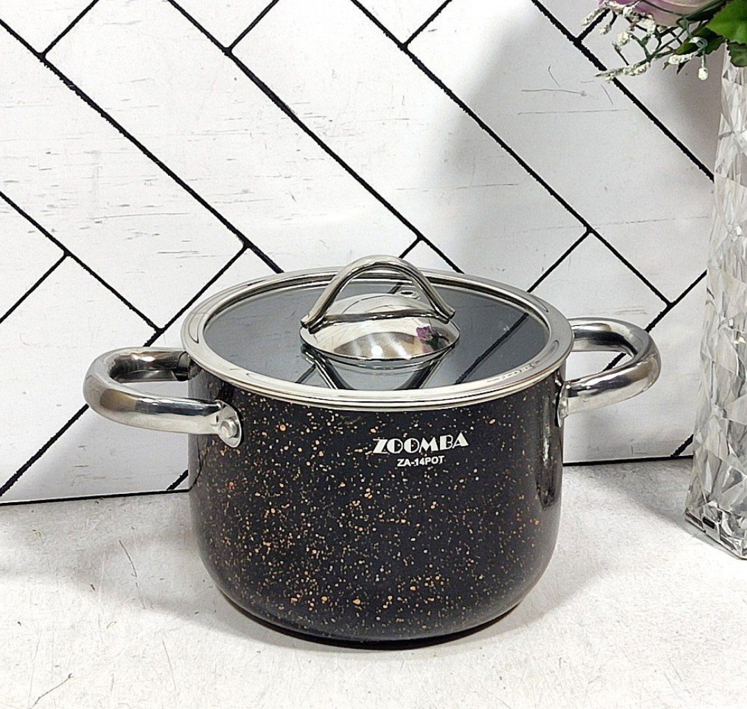 قابلمه گرانیتی مشکی سایز 14 زومبا درب پیرکس