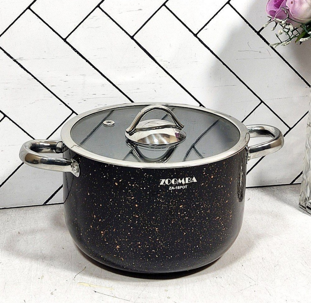 قابلمه گرانیتی مشکی سایز 18 زومبا درب پیرکس