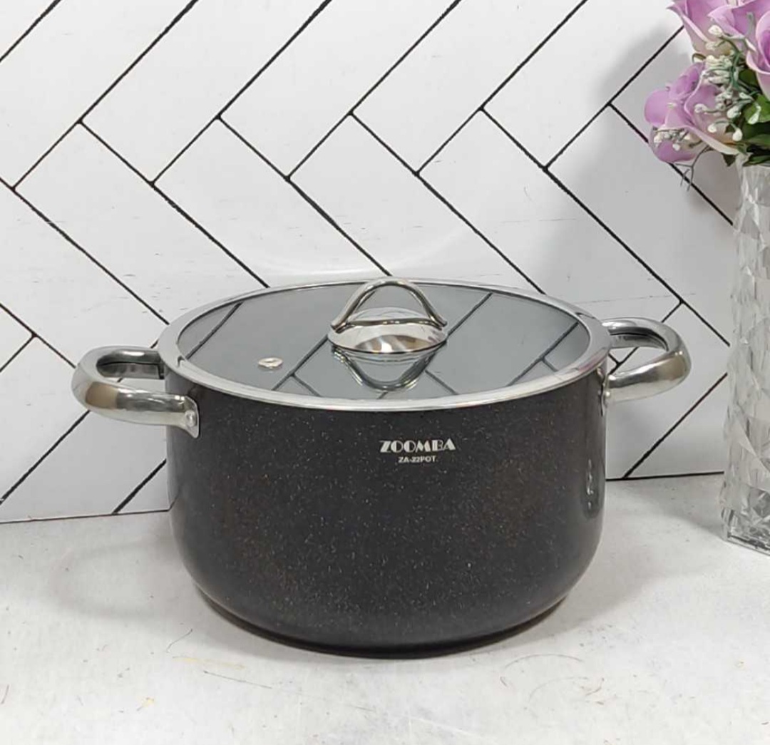 قابلمه گرانیتی مشکی سایز 22 زومبا درب پیرکس