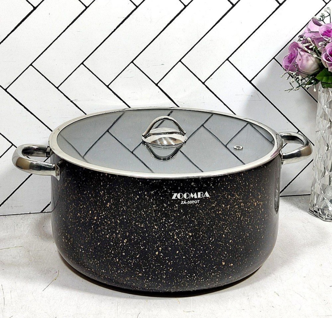 قابلمه گرانیتی مشکی سایز 30 زومبا درب پیرکس