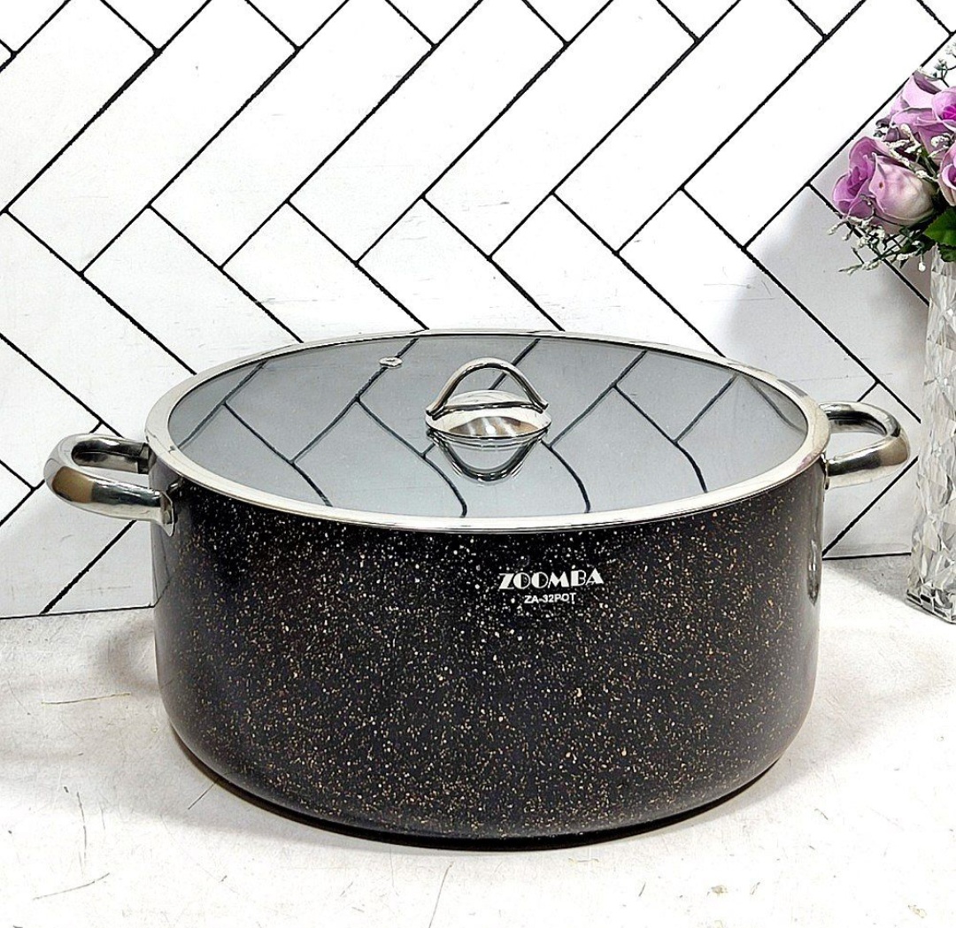 قابلمه گرانیتی مشکی سایز 32 زومبا درب پیرکس