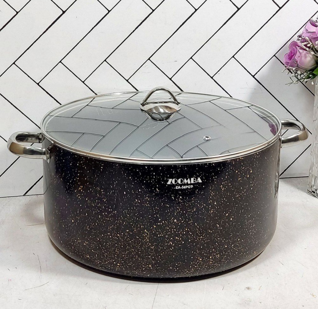 قابلمه گرانیتی مشکی سایز 34 زومبا درب پیرکس