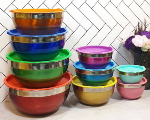 سرویس کاسه ۹ پارچه درب رنگی استیل نگیر زومبا m2921