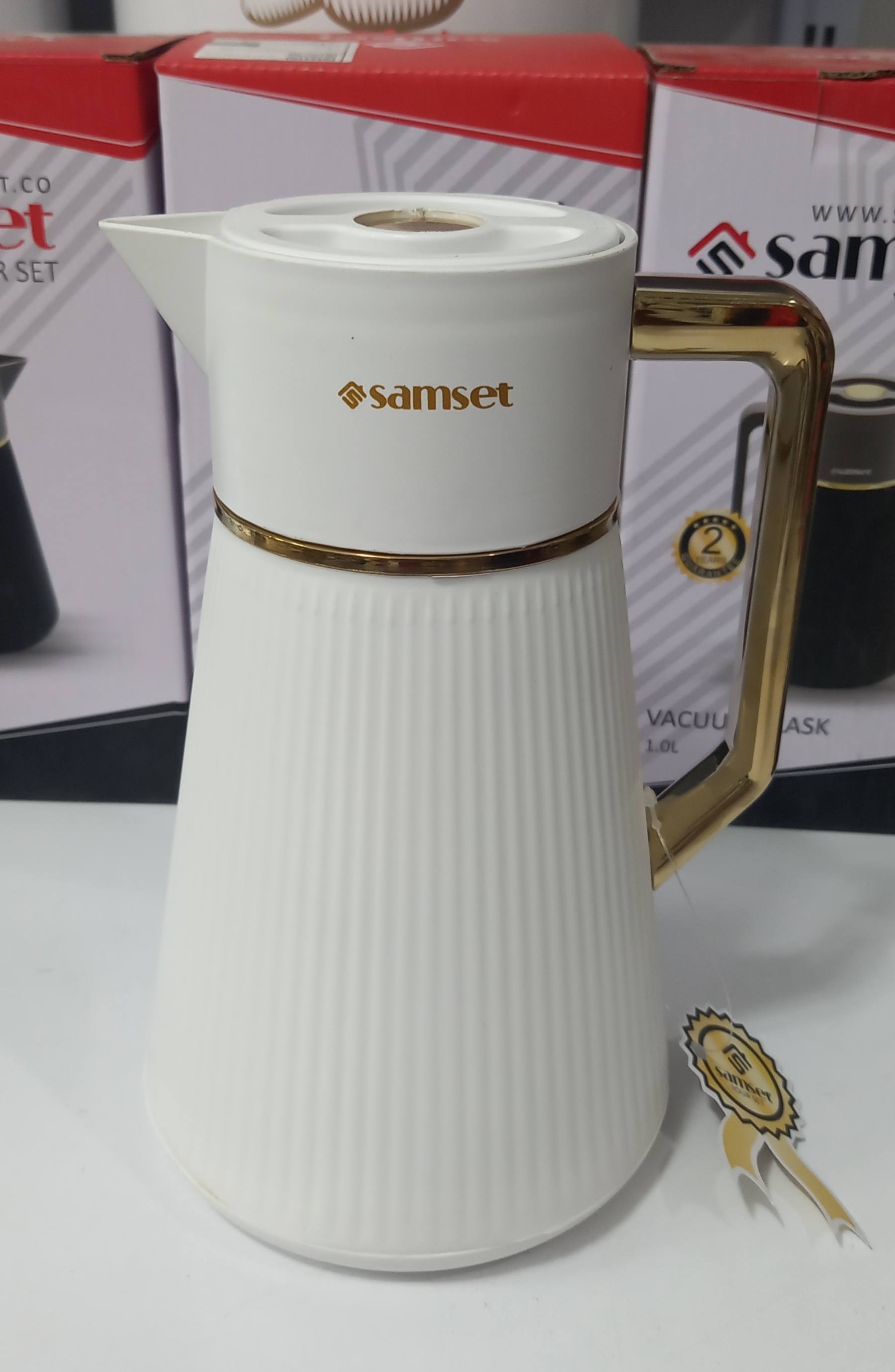 فلاسک ۱ لیتری سام ست دسته طلایی