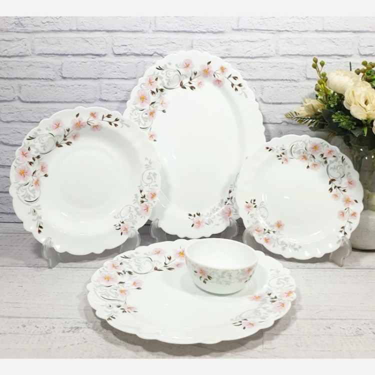 شامل: 6 عدد برنج خوری 6 عدد خورشت خوری 6 عدد پیش دستی 6 عدد پیاله 1 عدد دیس برنج