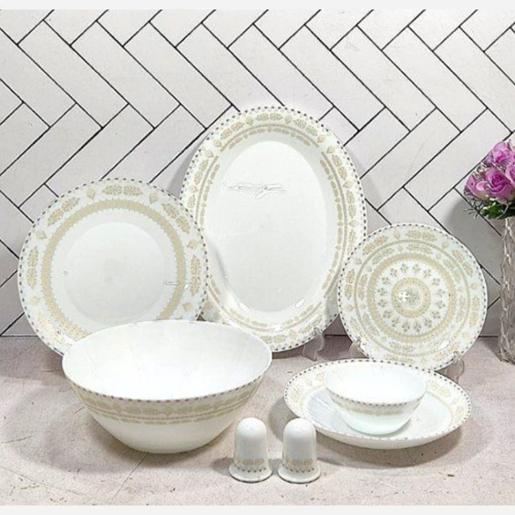 شامل: 6 عدد برنج خوری 6 عدد خورشت خوری 6 عدد میوه خوری 6 عدد پیال 2 عدد نمک پاش 1 عدد دیس 1 عدد کاسه بزرگ